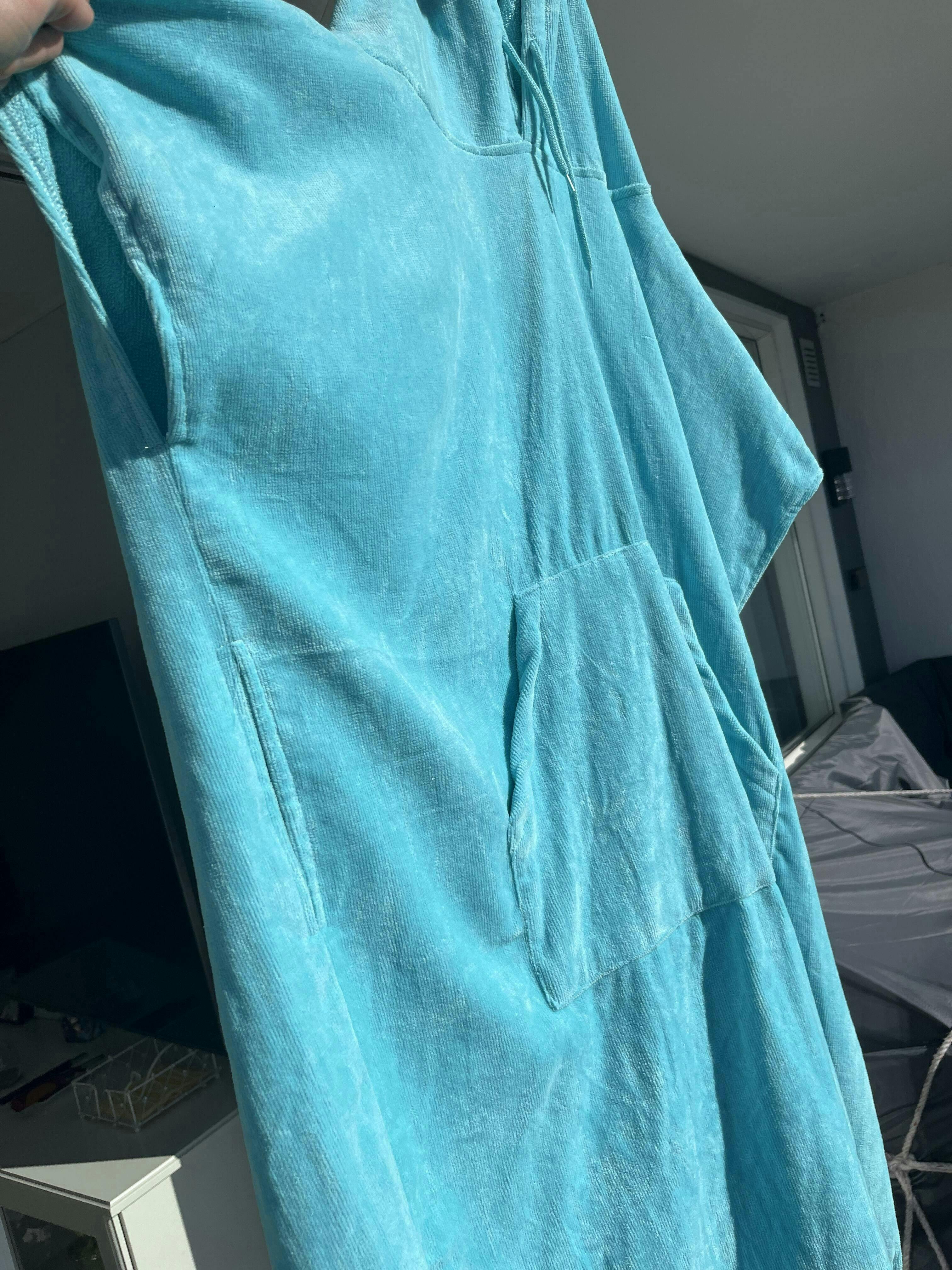Geniales Teil, und so viel mehr als nur eine Wechselponcho. Super mit einer gemütlichen und weichen Kapuze, wenn man nasses Haar hat, besonders wenn es ein bisschen windig am Strand ist. Auch gemütlich zum Schlafen, besonders wenn das Haar nach dem Abendduschen feucht ist. Perfekt für faule Tage zu Hause und im Ferienhaus, im Garten, auf Bootstour und am Strand, am Pool und im Schwimmbad. Schöne Farben. Fällt groß aus.